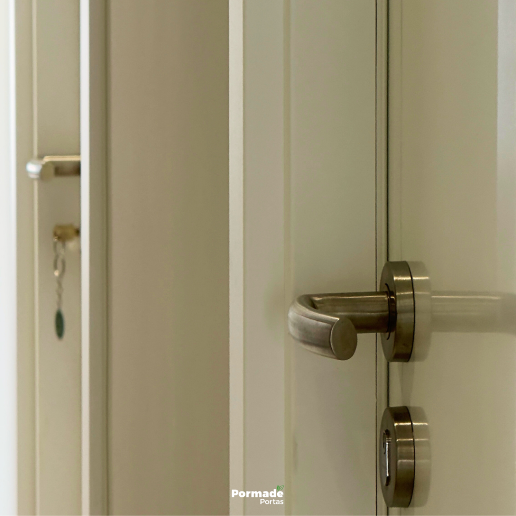 Assim como acontece com os rodapés, uma boa prática é escolher as ferragens junto com as portas. Isso garante compatibilidade técnica e evita escolhas inadequadas para o uso ou para a região onde a obra está localizada.