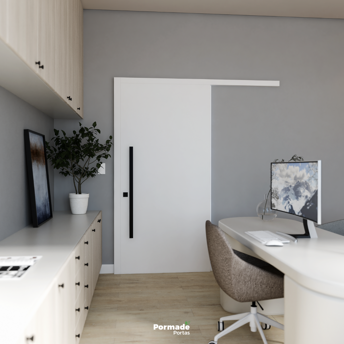 A porta de correr é um dos itens mais pedidos da Pormade justamente por ser versátil, prático e com uma estética contemporânea. Ela se adapta a diferentes conceitos, dos mais minimalistas aos mais marcantes.
